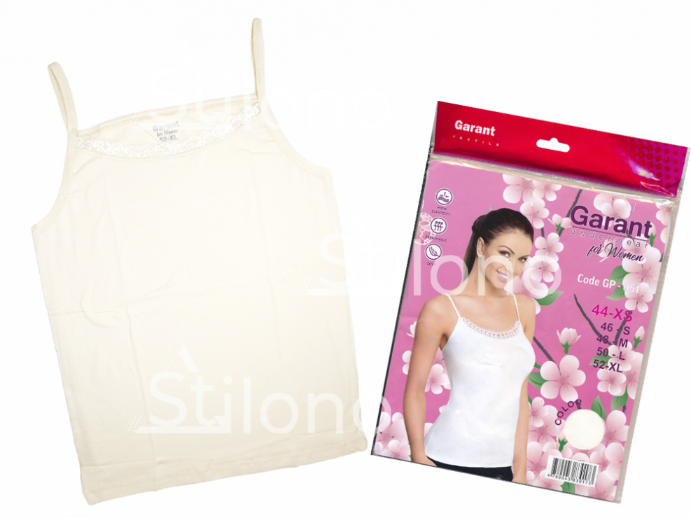 Женская майка производства GARANT обеспечит своей владелице комфорт, гигиеничность и удобство в течение всего дня. Такое нательное белье востребовано покупательницами, и радует активными продажами владельцев розничных точек.